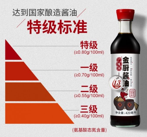 數(shù)據(jù)顯示,“金廚醬油”氨基酸態(tài)氮含量≥1.3g/100ml,遠(yuǎn)遠(yuǎn)高于國(guó)家醬油釀造標(biāo)準(zhǔn)的0.8g/100ml特級(jí)標(biāo)準(zhǔn)。從側(cè)面也說(shuō)明金廚醬油的“鮮醇”度遠(yuǎn)超國(guó)家標(biāo)準(zhǔn),是地地道道的頭道新鮮原釀。而這些,完全滿足了廣府人對(duì)高鮮醬油的高需求。