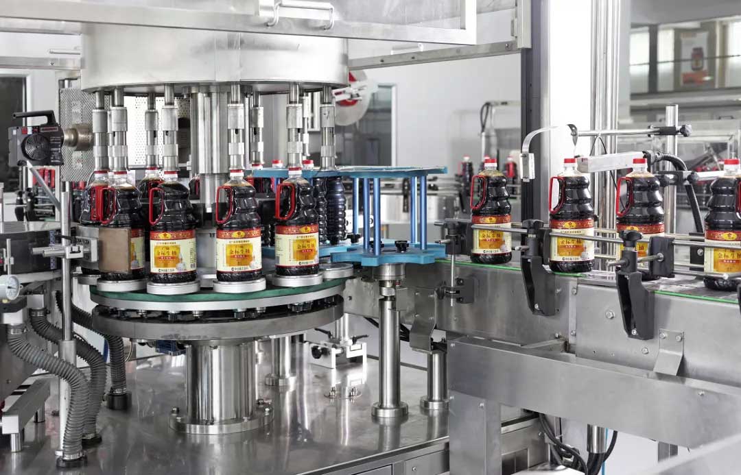 廣味源的醬油產(chǎn)品經(jīng)高溫滅菌灌裝后,進(jìn)行自動化貼標(biāo)