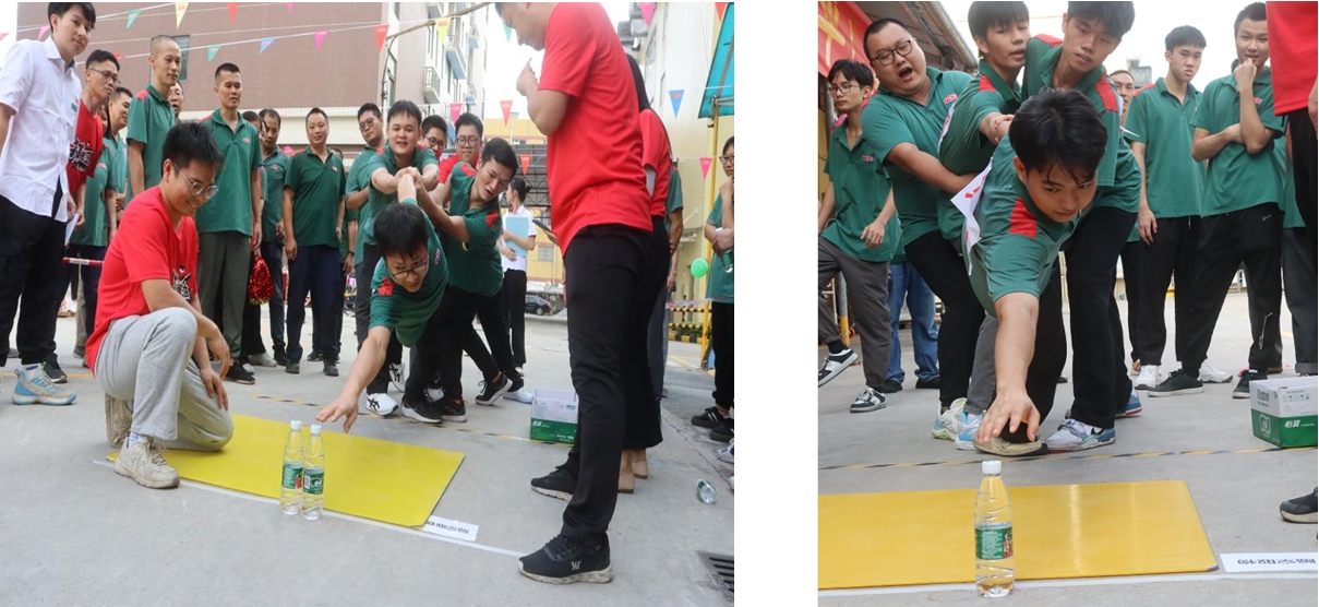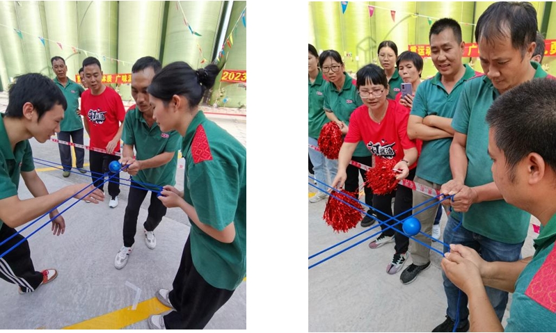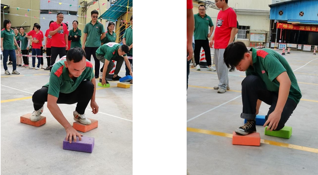 第五個項目:摸石頭過河。每名隊員手拿三塊磚頭過河,6名隊員接力完成,每人走10米。這個項目手腳的協(xié)調(diào)性要求很高,有些隊員為了不犯規(guī)加時,用最簡單的辦法三塊磚前后移動,也是一個非常棒的辦法,本項目在有條不紊的比賽中充分體現(xiàn)了廣味源人務實篤行,行穩(wěn)致遠的合作態(tài)度。