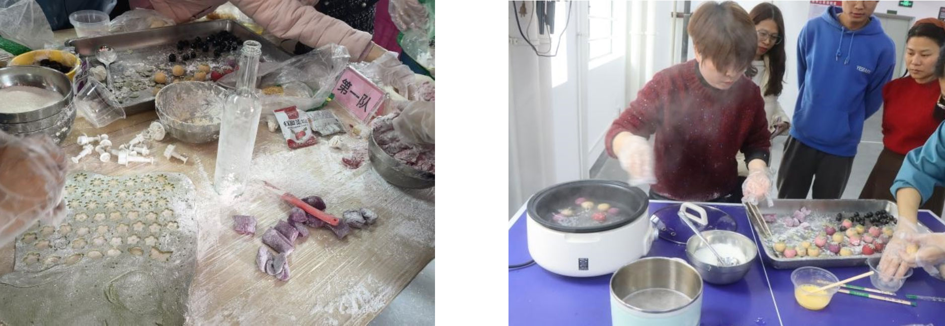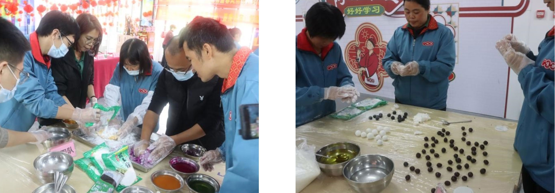 隨后主持人介紹出席活動(dòng)的評(píng)委及詳細(xì)介活動(dòng)的規(guī)則。接著各小組成員迫不及待想地投入到熱烈的DIY湯圓制作比賽中,每個(gè)參賽小組成員都各司其職,有的煮開水,有的搓粉,有的倒水,有的搓餡料,有的煮湯圓,場面熱鬧非凡,隊(duì)員們忙得不亦樂乎,湯圓制作比賽不僅是一場比賽,更是一場團(tuán)聚和交流,隊(duì)員們?cè)诒荣惖倪^程中,相互學(xué)習(xí)、分享經(jīng)驗(yàn)和技巧,其樂融融、笑聲不斷。
