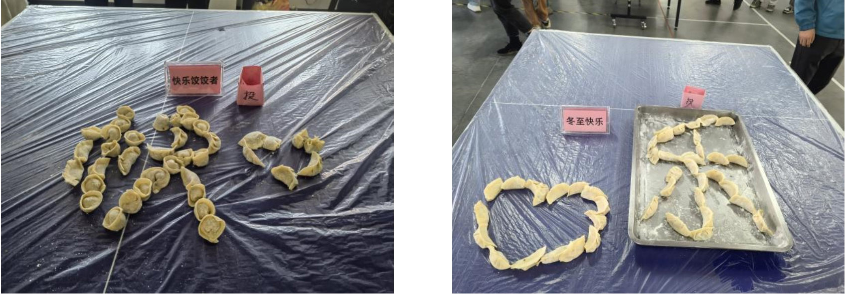 14:40,“包餃子速度”比賽率先開(kāi)場(chǎng),每組派2名代表參加包餃子比賽,要求煮好不能露餡。隊(duì)長(zhǎng)們分好工后大家投入緊張的比賽,有的調(diào)餡,有的煮開(kāi)水,有的準(zhǔn)備物資,賽場(chǎng)上,有的手法嫻熟地包出一個(gè)個(gè)飽滿(mǎn)圓潤(rùn)的餃子,有的像月牙餃,有的像元寶;有的則是初次嘗試,手法略顯生疏,包出的餃子形狀各異,但臉上洋溢著滿(mǎn)滿(mǎn)的成就感?!F(xiàn)場(chǎng)其樂(lè)融融,好一個(gè)幸福大家庭。