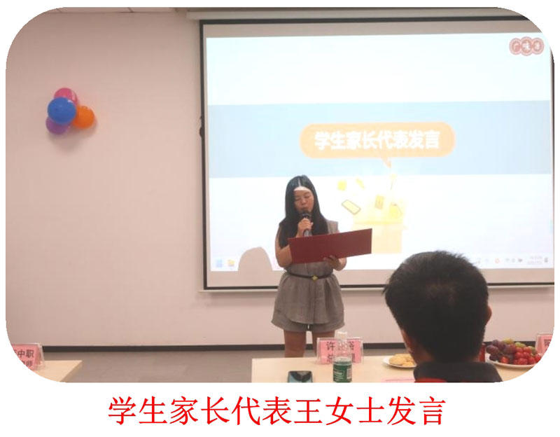 父母的支持是學(xué)子們揚帆起航的堅強后盾,活動中我們邀請了學(xué)生家長一同參與,并見證他們的高光時刻,讓他們感受到了畢業(yè)禮濃郁的氣氛,且有幸邀請到學(xué)生家長代表王女士上臺為我們9位畢業(yè)生送上了最樸實的祝福和期望!
