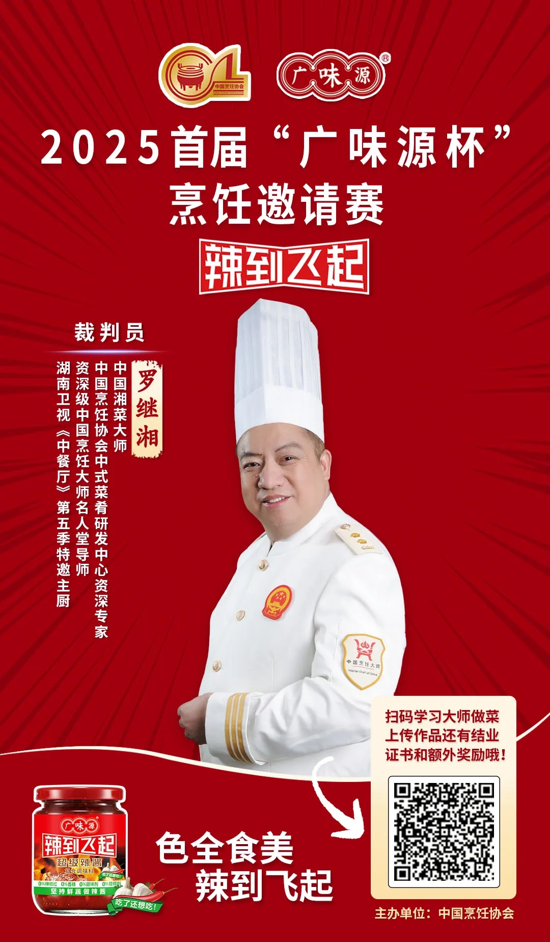 作為百年醬香世家的傳承者,廣味源始終以“匠心釀造”為魂。本屆大賽以“廣味源辣到飛起”之名,泰斗坐鎮(zhèn)、名廚云集、頂流加盟、權(quán)威督審、宗師壓陣,不僅匯聚頂尖烹飪智慧,更致力于推動中華餐飲文化在堅守與創(chuàng)新中生生不息。我們堅信,在如此殿堂級評審天團(tuán)的見證下,每一位參賽廚師都將以極致技藝,在“廣味源杯”的舞臺上,書寫屬于自己的味覺傳奇!